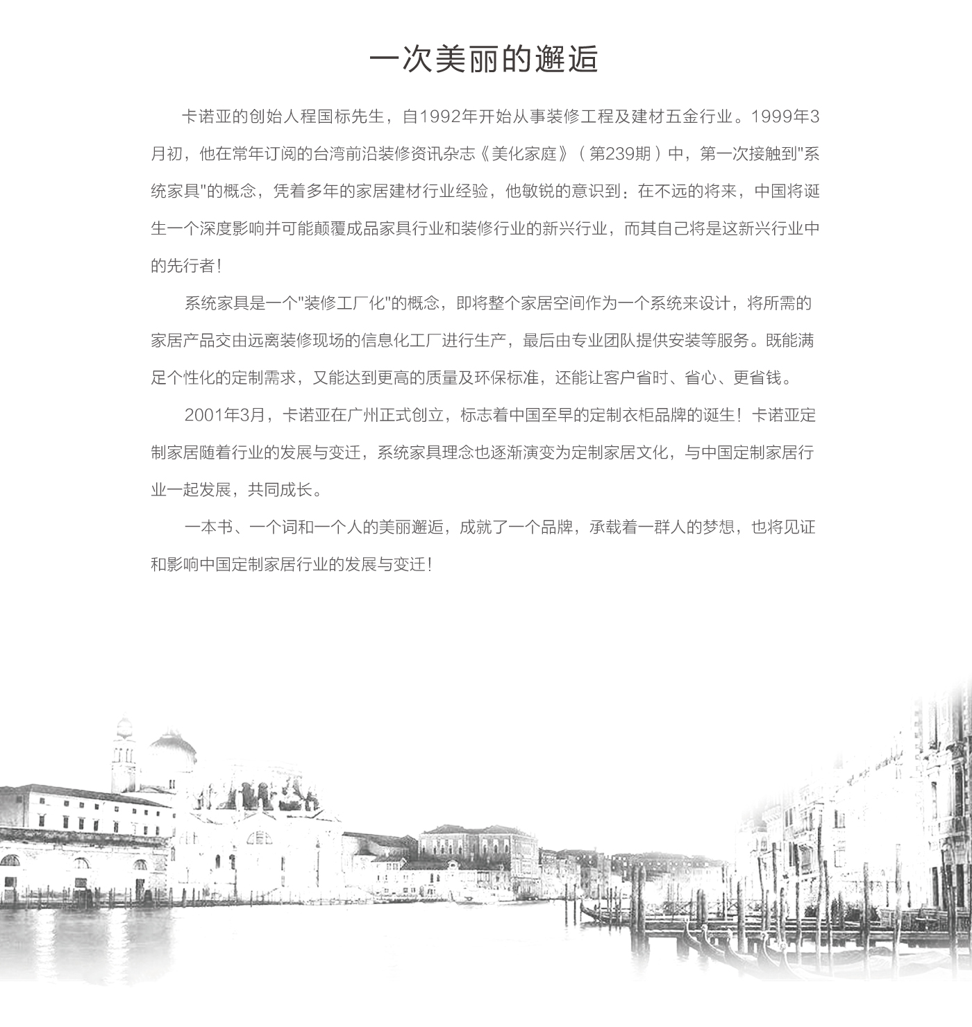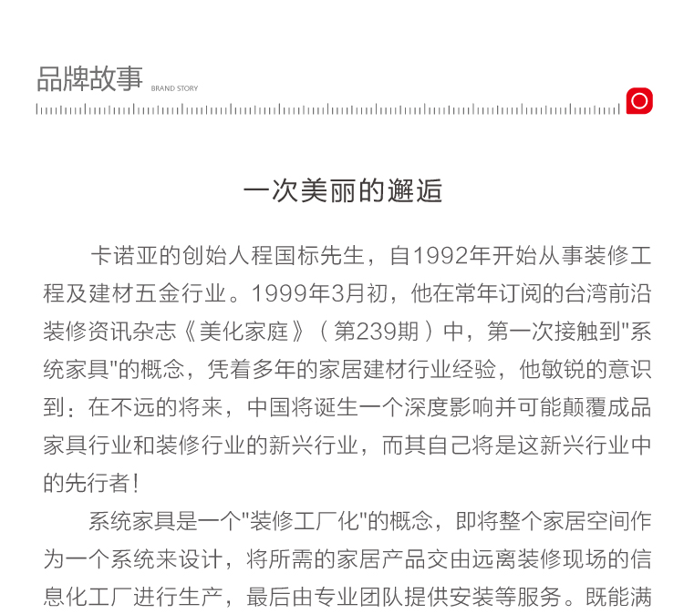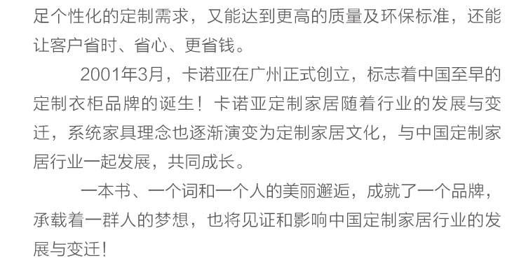 我們致力于打造專業(yè)、信賴的定制家居品牌,用卡諾亞人的不斷努力,讓家因我們而無限美好!