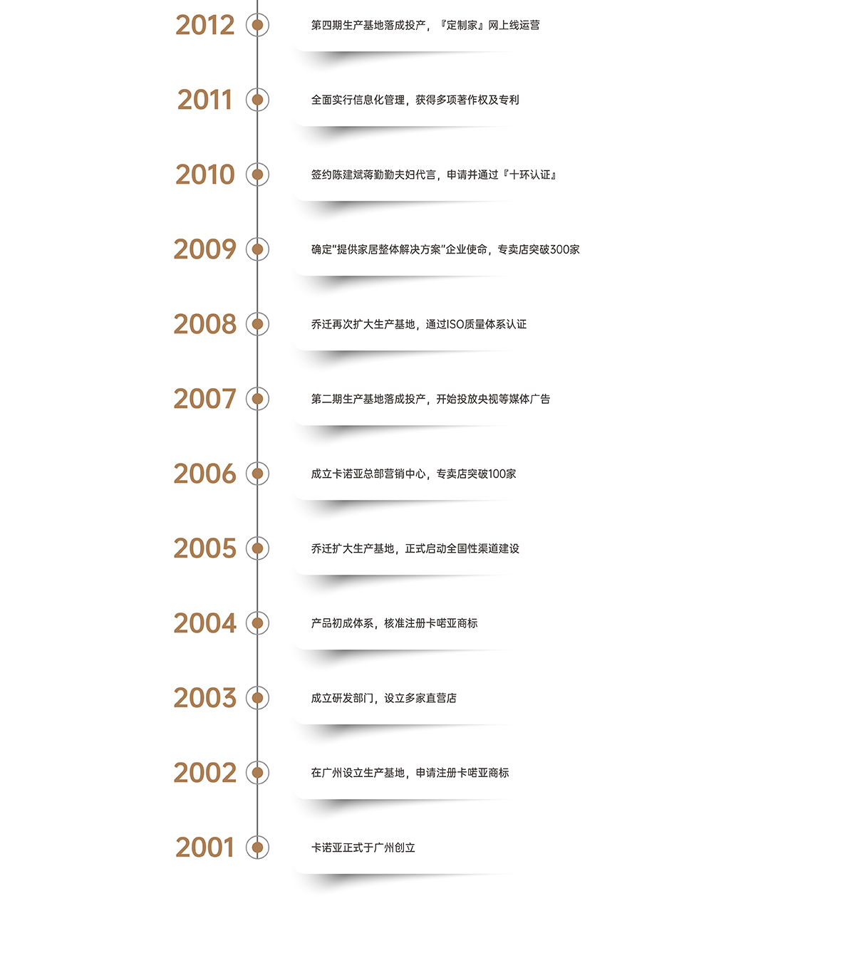 卡諾亞是集研發(fā)、銷售、生產(chǎn)、服務于一體的卡諾亞(Knoya)、羅亞雙品牌運營的高新技術企業(yè)??ㄖZ亞創(chuàng)立于2001年3月,現(xiàn)擁有廣東清遠、廣東廣州兩大生產(chǎn)基地,以及國際領先的信息化、智能化生產(chǎn)線,還擁有家居研究院及商學院兩大“院系”。在產(chǎn)品的研發(fā)上,始終堅持科學、創(chuàng)新、前沿,目前,已榮獲各類專利及著作權200多項。