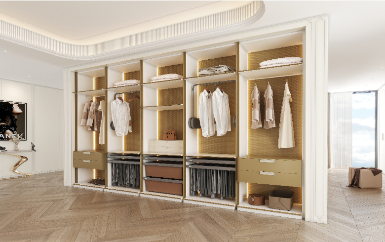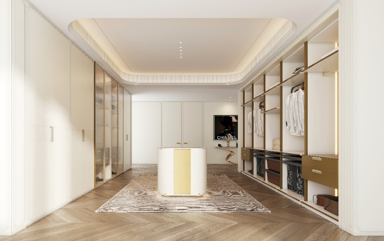 從收納到展示,繁而不亂,每一個(gè)細(xì)節(jié)、每一個(gè)舉止皆優(yōu)雅精致。主臥帶衣帽間、梳妝臺(tái),化妝更衣一氣呵成,無需來回走動(dòng)。