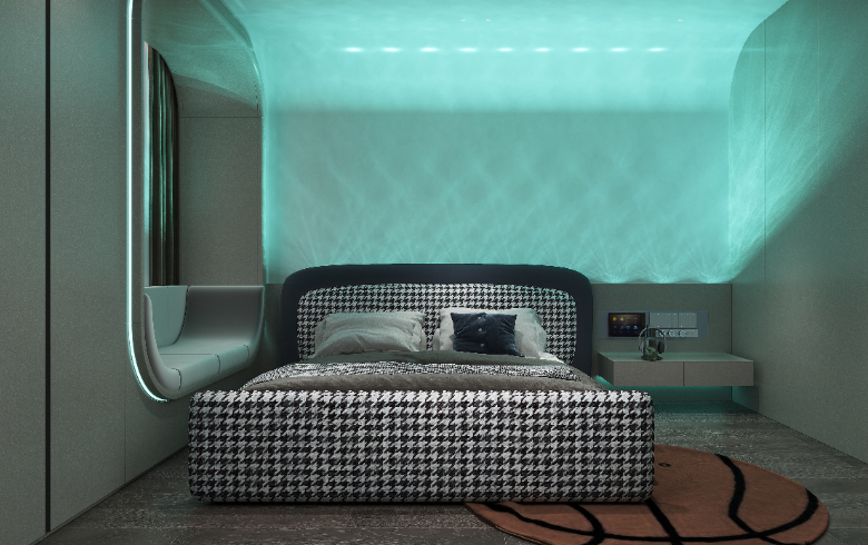 撞色沙發(fā)&輕量茶幾,坐臥皆可,精致舒適,是 COCO治愈疲憊的“躺平”寶地。