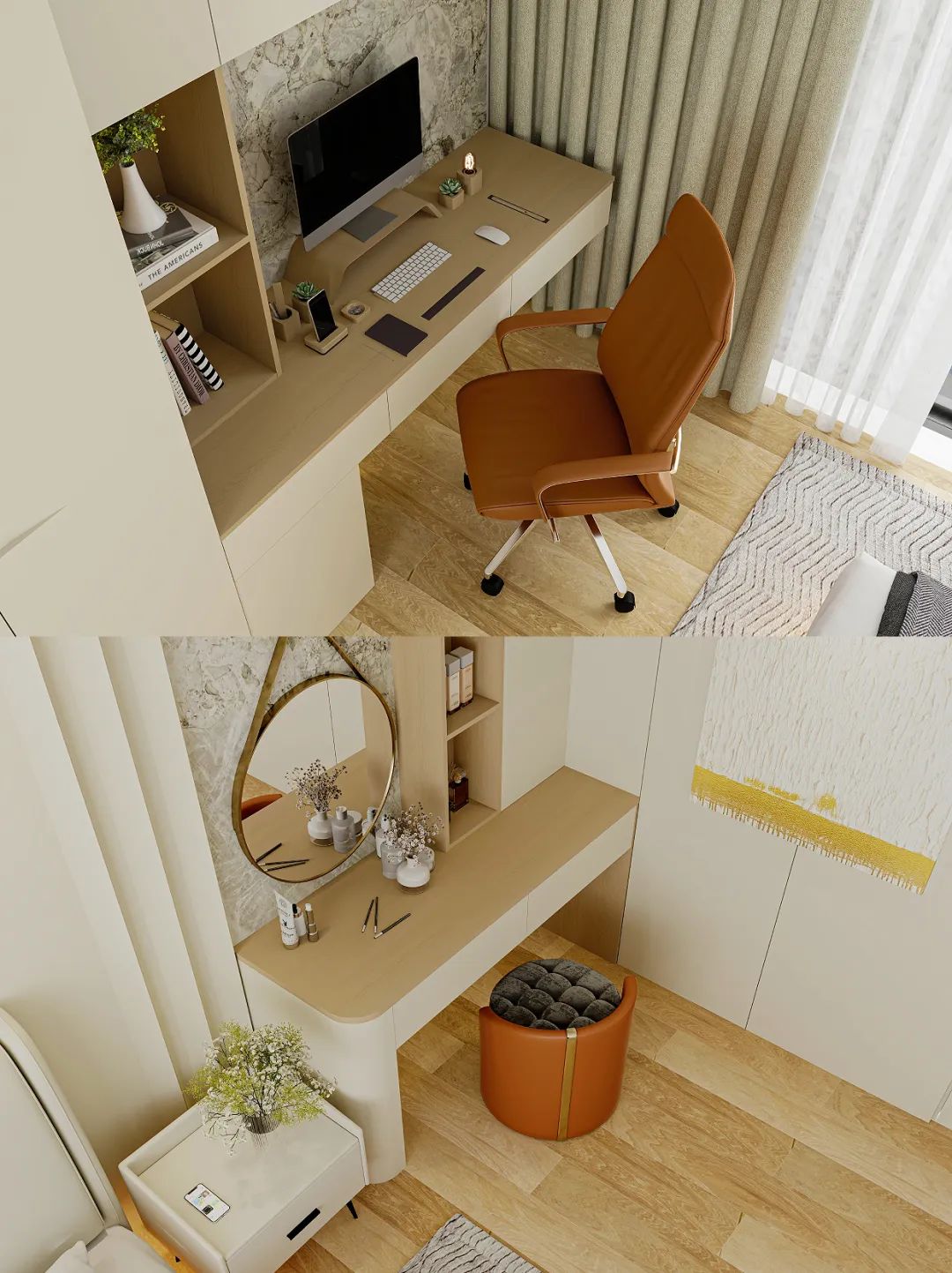 把辦公區(qū)裝進臥室里,實現(xiàn)便捷辦公,有個舒適獨立的工作空間,效率會提升不少~