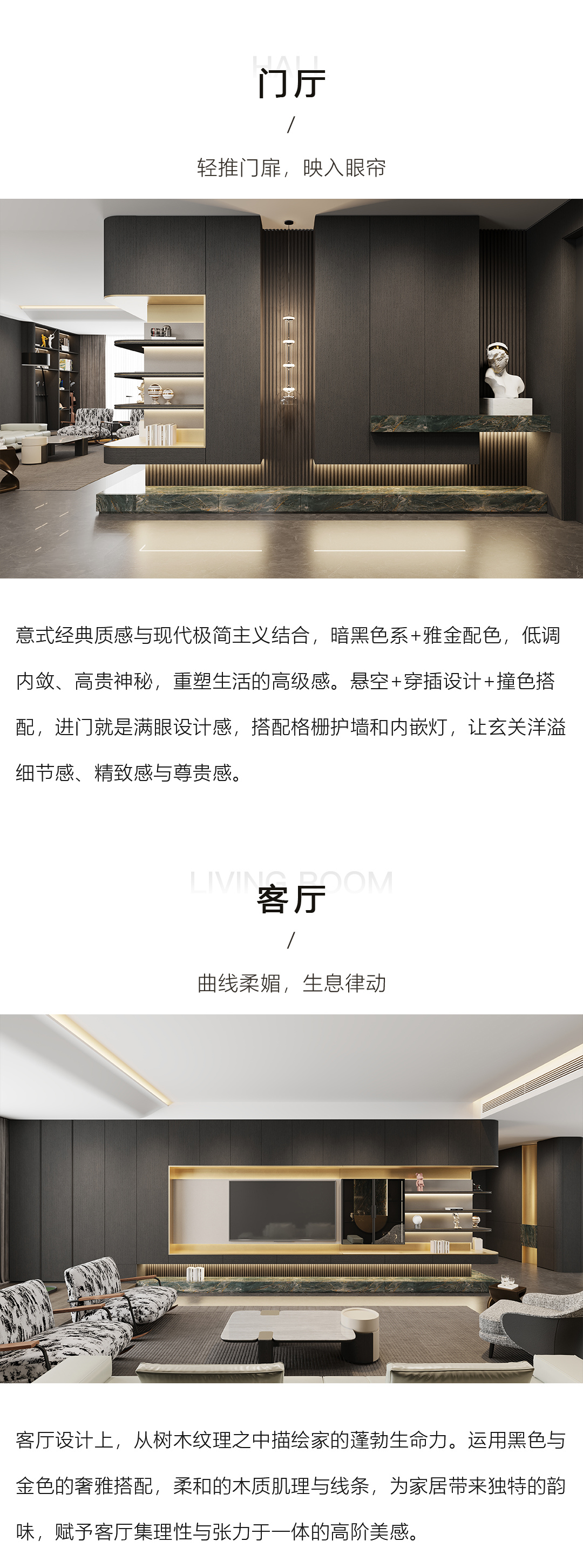 意式極簡宅邸丨暗黑色系+雅金演繹現代豪宅潮流范