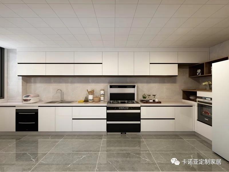 L型廚柜動(dòng)線合理,空間極致利用。定制大量的吊柜和地柜,完全收納烹調(diào)所需的瓶瓶罐罐和鍋碗瓢勺,