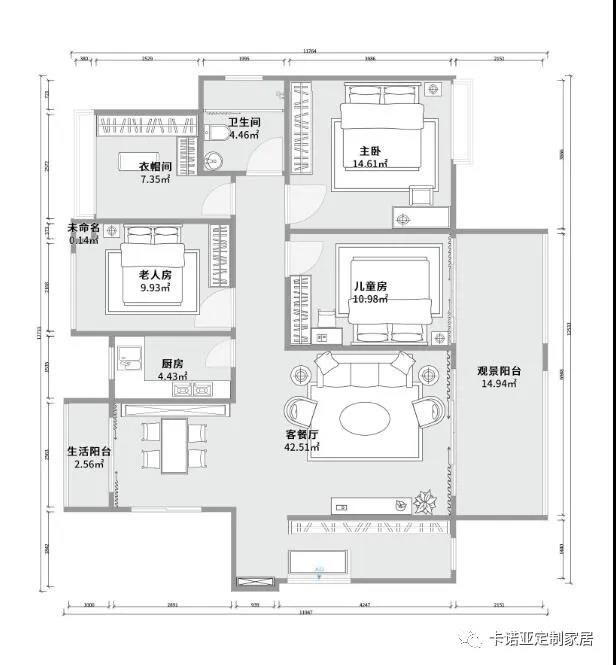 為了兼顧父母的傳統(tǒng)審美需求,特意采用具有中式韻味的御品木、水波紋古銅拉手、亞麻布紋等元素。