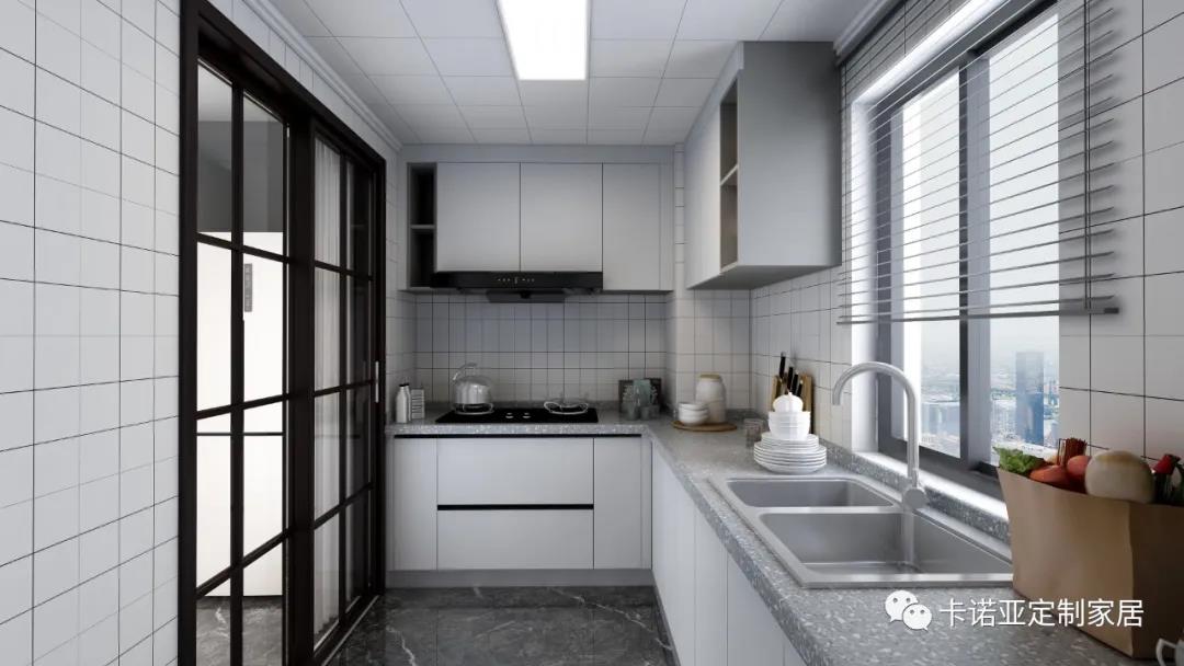 清洗區(qū)和烹飪區(qū)分別位于轉(zhuǎn)角兩側(cè)