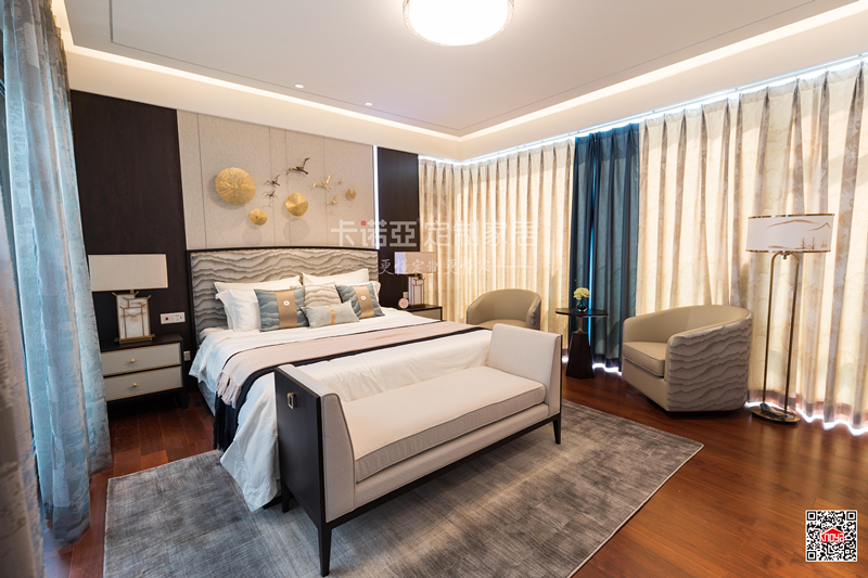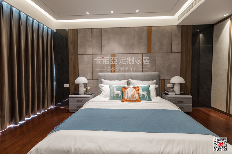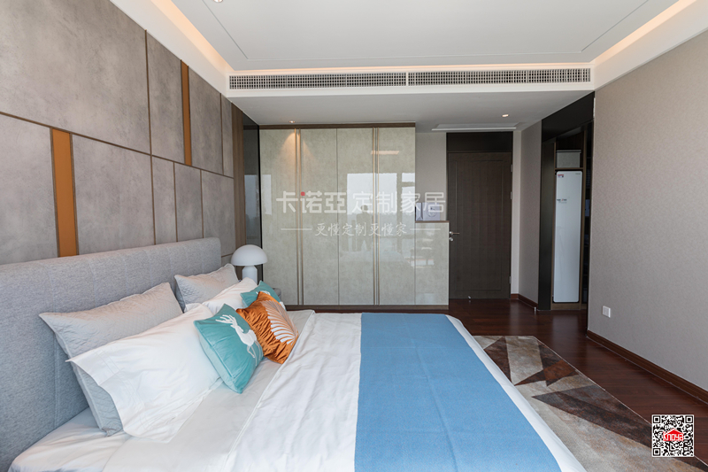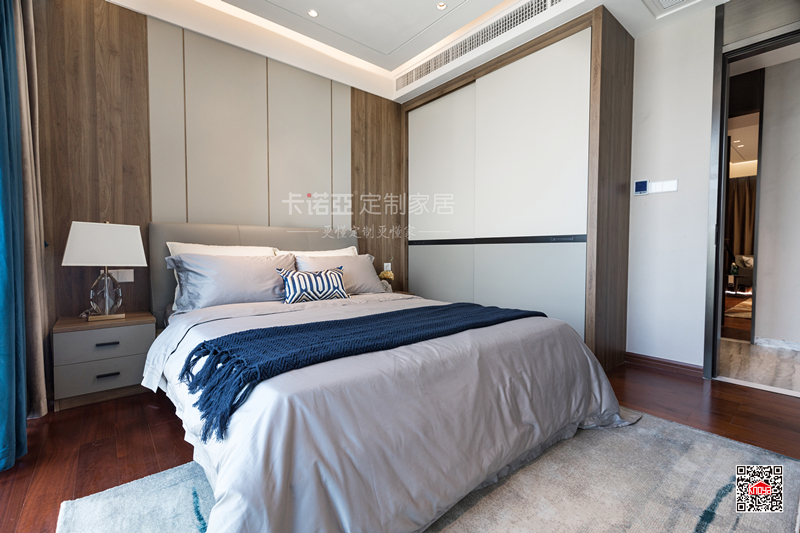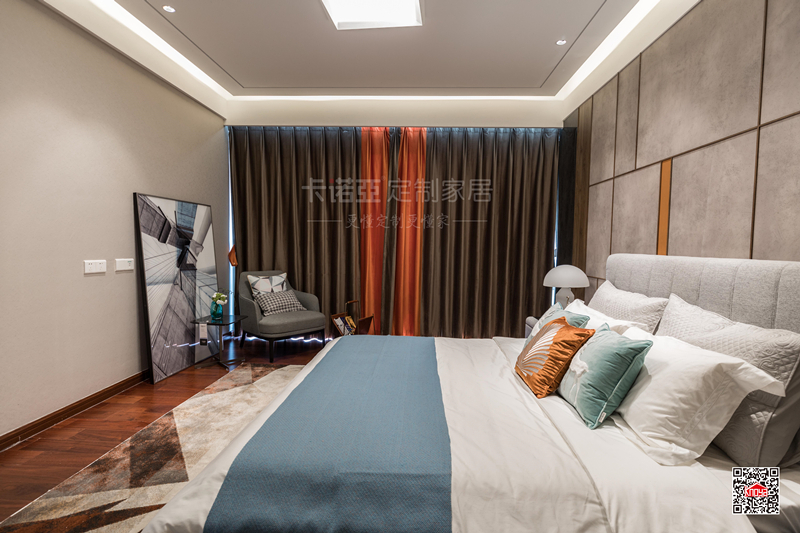 雖然主調(diào)是簡約風(fēng),但是臥房整體自帶奢華感。