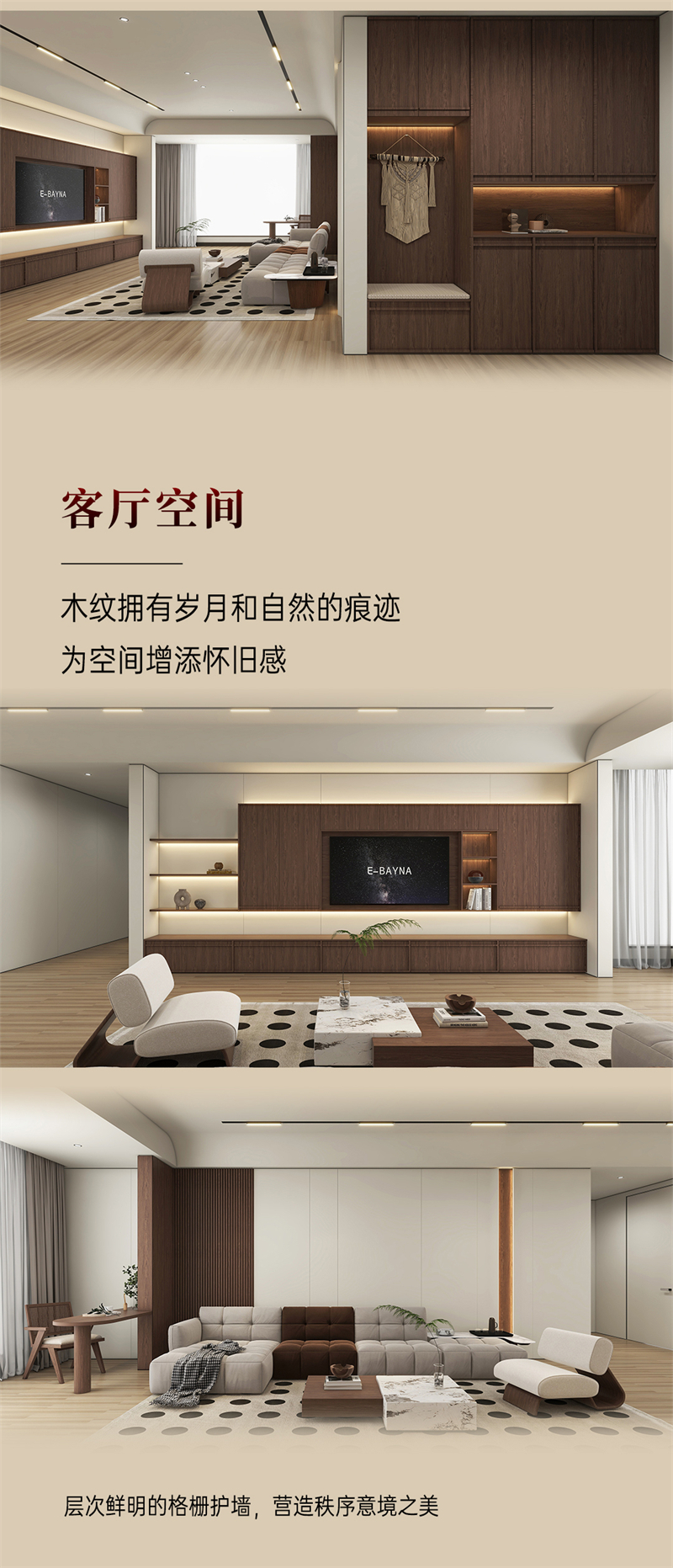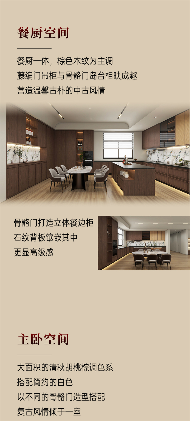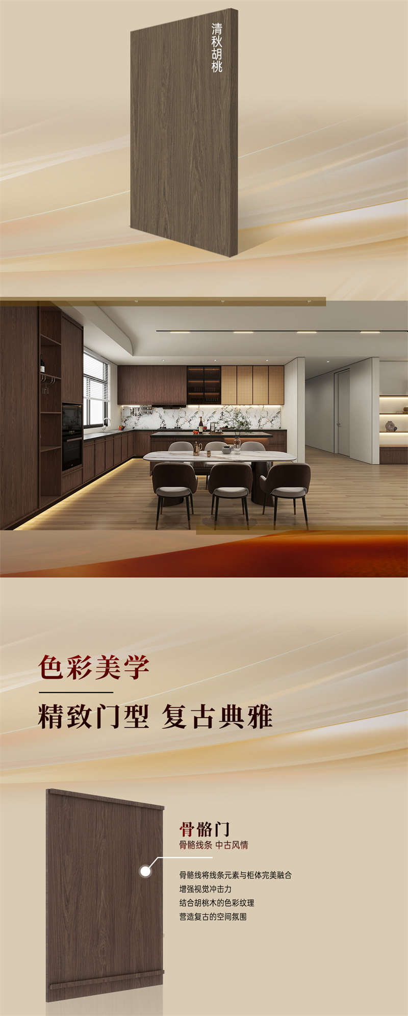 2024年新品系列,韶光 |中古風(fēng)棕色胡桃木紋為主色調(diào),搭配白色暗紋,細(xì)膩的藤編門與硬朗的骨骼門讓人聯(lián)想到古老的家具,充滿了歲月的痕跡。木紋的邊框+細(xì)密的藤編,自帶復(fù)古朦朧美感;拼樞門和藤門結(jié)合運(yùn)用,使整個(gè)空間透氣感強(qiáng),并擁有獨(dú)特舒適的慵懶氛圍。