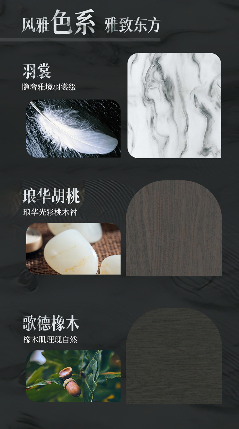 2025年新品系列,藏玉系列 |現(xiàn)代中式風(fēng)格藏玉系列以“形、質(zhì)、氣、韻、神”的五重境界,以小見(jiàn)大、步移景異,串聯(lián)式的節(jié)點(diǎn)打造層次遞進(jìn)的空間情緒。從歸家禮儀、空間格局以及設(shè)計(jì)細(xì)節(jié)等多個(gè)維度,建構(gòu)禮序雅境。市場(chǎng)定位:旗艦款產(chǎn)品,適合35至55歲企業(yè)高管精英