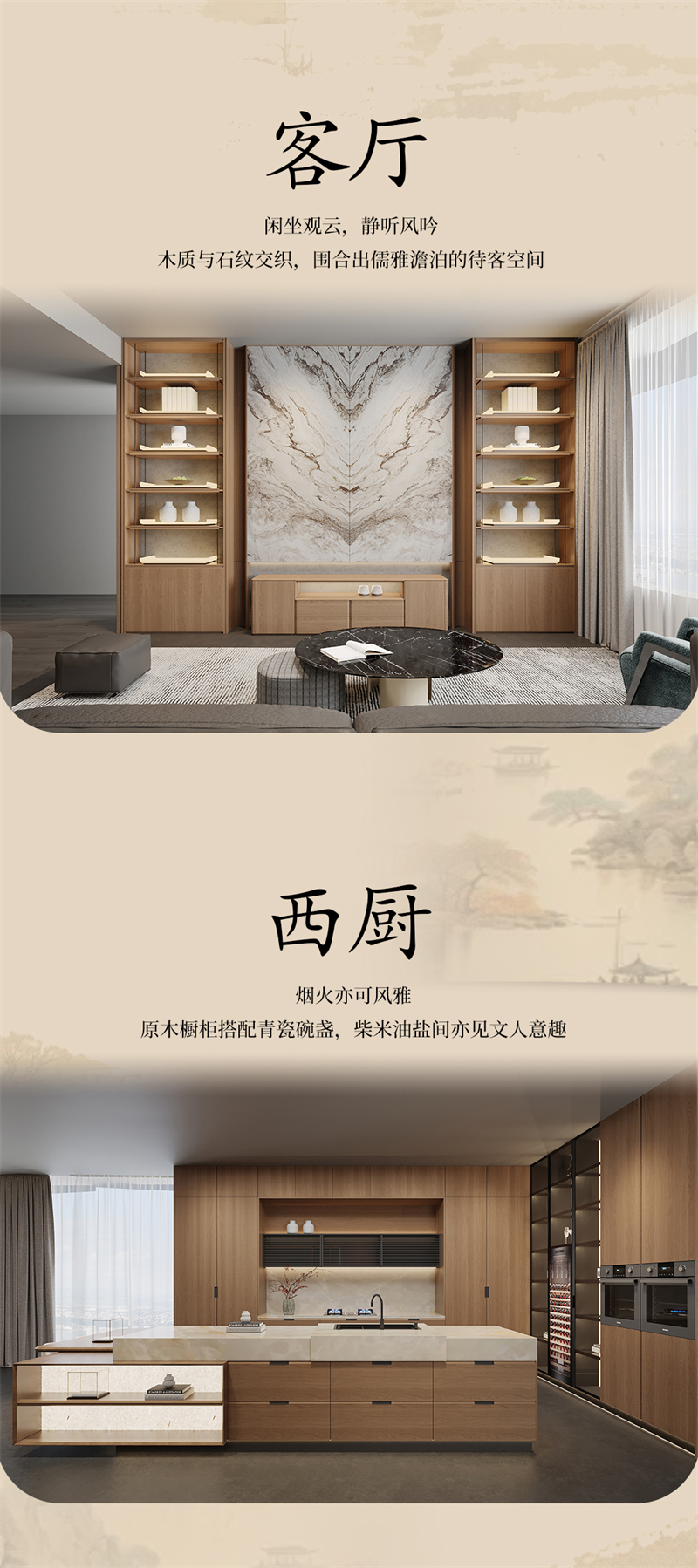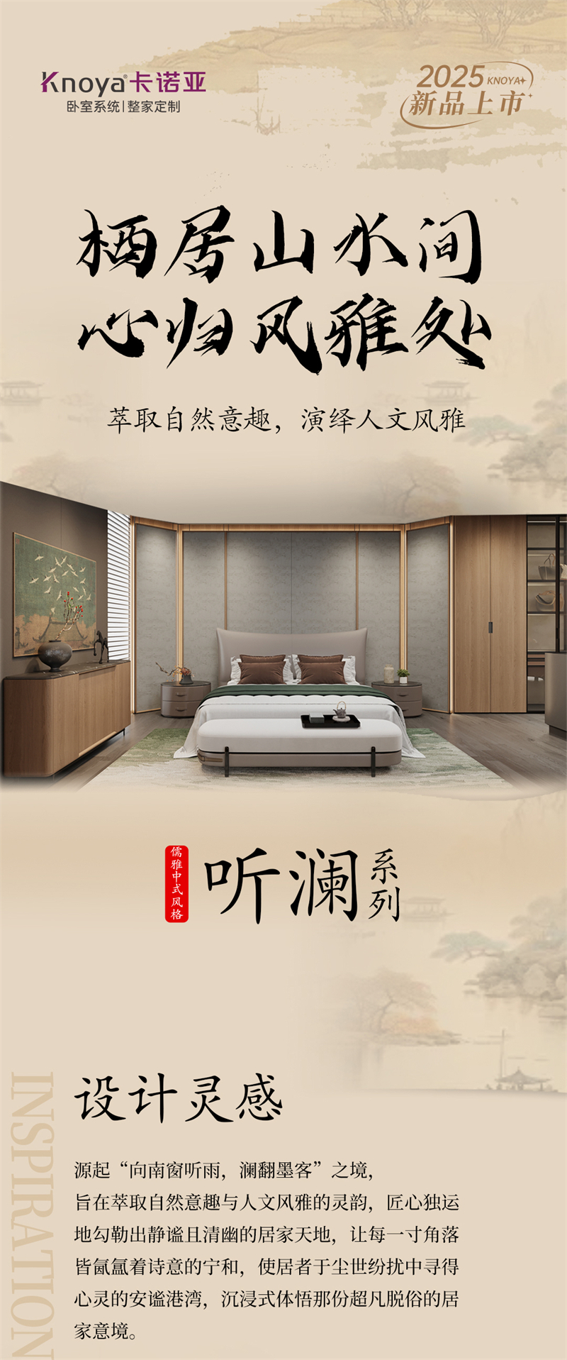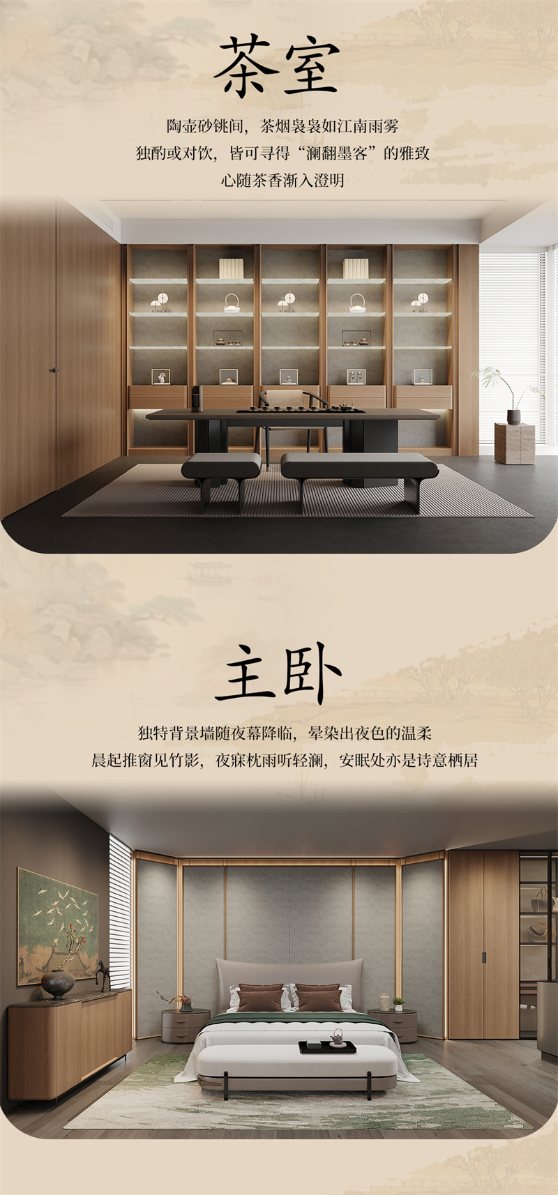 2025年新品系列,聽(tīng)瀾系列 |儒雅中式風(fēng)格源起“向南窗聽(tīng)雨,瀾翻墨客”之境,旨在萃取自然意趣與人文風(fēng)雅的靈韻,匠心獨(dú)運(yùn)地勾勒出靜謐且清幽的居家天地,讓每一寸角落皆氤氳著詩(shī)意的寧和,使居者于塵世紛擾中尋得心靈的安謐港灣,沉浸式體悟那份超凡脫俗的居家意境。