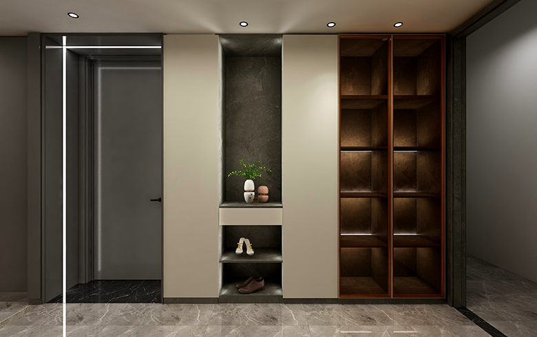 “雅皮士”與“黑金剛”撞色,藝術(shù)油畫點(diǎn)睛,打破灰白色系的高冷,打造富有人文氣質(zhì)的衣帽間。