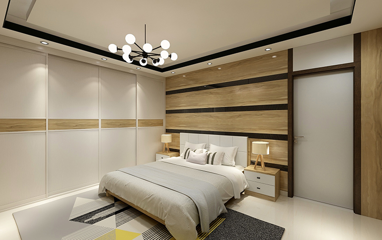 床頭護墻板清晰自然的橄欖木紋理,讓空間更具北歐風,色澤飽滿的黑鏡飾面點綴其中,散發(fā)高貴冷艷的光澤。