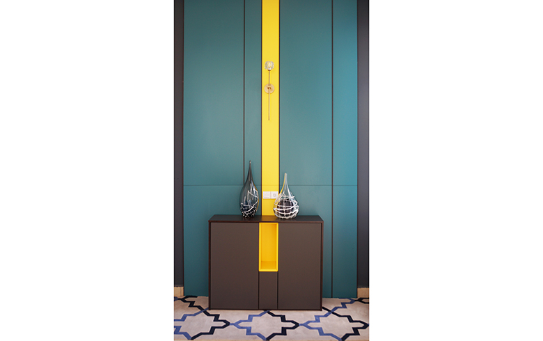整堵護墻板以天湖藍為主色調,活力橙點綴其間,采用創(chuàng)意的混搭撞色設計,瞬間點亮了墻面的活力與視覺沖擊力。