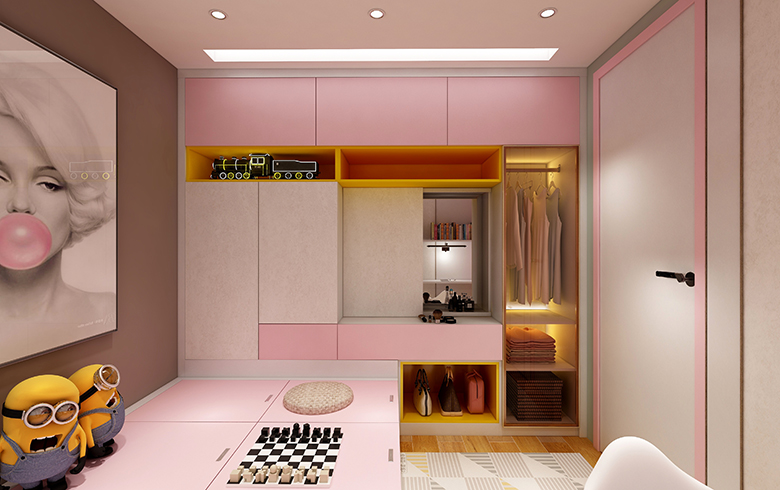 本設(shè)計屬于本人原創(chuàng)設(shè)計,采用本公司卡諾亞最新的產(chǎn)品搭與最熱門的產(chǎn)品進行設(shè)計,客餐廳,主臥柜體采用熱門產(chǎn)品御品木搭與新品321201進行搭配,用沉穩(wěn)高雅的御品木體現(xiàn)了房子主人對生活的追求,對事業(yè)的沉穩(wěn)。用清新又高端的321201來體現(xiàn)房子主人對美好生活的向往,類似于天然石的紋路或龍的鱗甲,有著一種高端的品質(zhì)生活。二者搭配再用暖光進行照射能夠營造出一種和諧溫馨的環(huán)境,能夠促進人與人之間的感情,女孩房/女孩功能房柜體顏色采用印象白外蓋門采用卡諾亞新產(chǎn)品粉紅佳人與321201作們板進行搭配,體現(xiàn)出女孩純潔的心與少女心,女孩功能房還帶有一點新品活力橙作為點綴,從而體現(xiàn)女孩對美的追求。