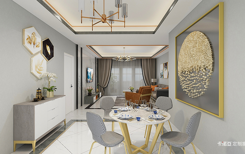 房屋空間四室兩廳兩衛(wèi),套內(nèi)面積111平米,四室分別是主臥,次臥(榻榻米),書房,衣帽間,滿足了三口之家的日常使用需求,使空間利用率達(dá)到最大化。全屋柜體采用深色板材,運(yùn)用玻璃門和淺色門板配金色拉手,通過棚線和家具顏色的搭配來達(dá)到風(fēng)格統(tǒng)一,打造輕奢風(fēng)格。客餐廳通過金色家具和軟裝,淺色的壁紙,體現(xiàn)溫馨的氛圍。