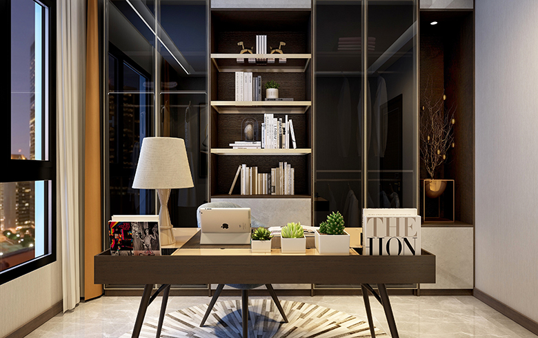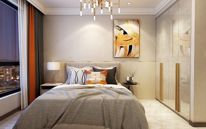 眾星羅列夜明深-寒山星夜——輕奢金屬感全屋定制,以夜的深沉為基調(diào),大氣、深邃,整體主色調(diào)為深色;以星的閃耀為裝點(diǎn),獨(dú)特、奢華,配色用于鮮亮的橘色調(diào)、玫瑰金屬線條。