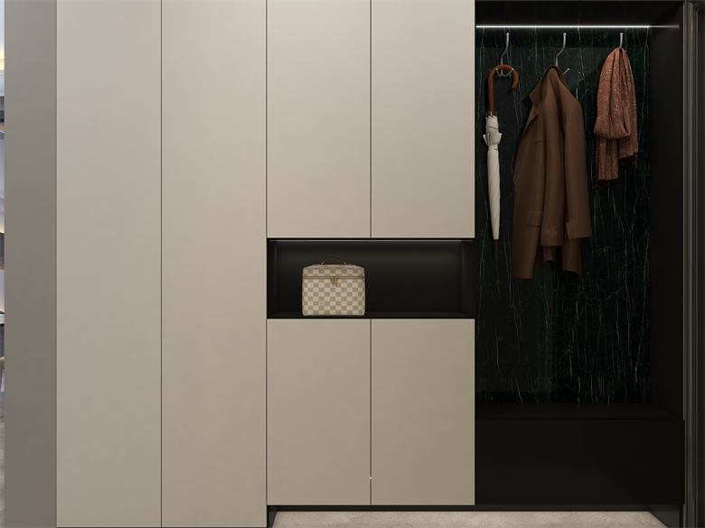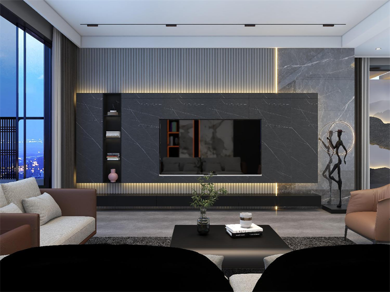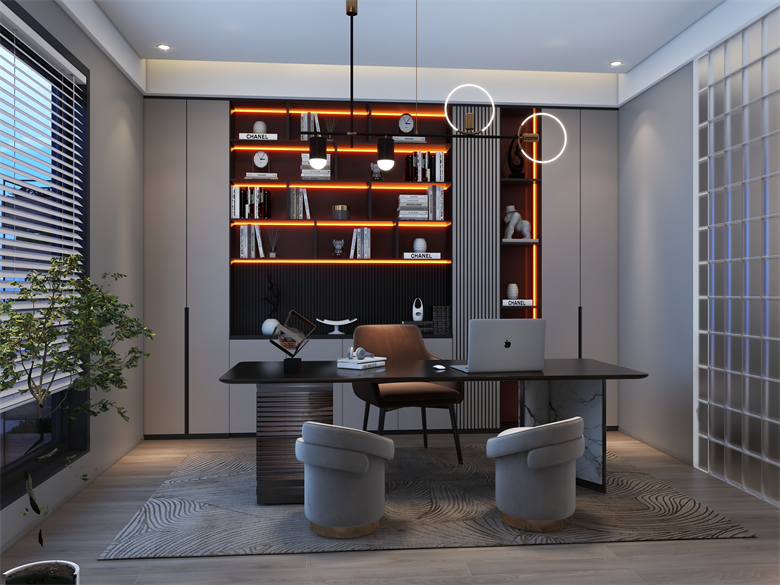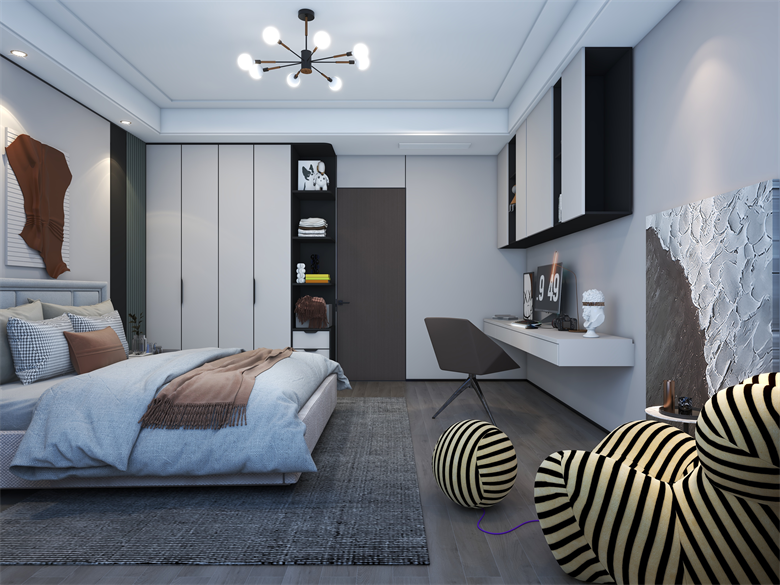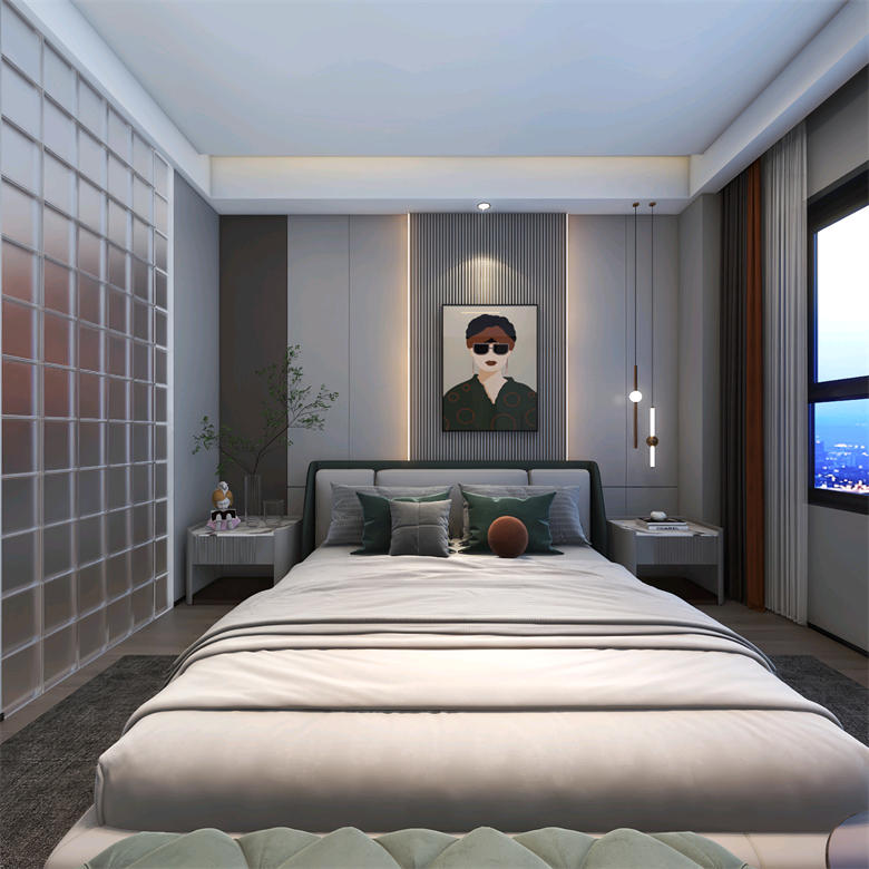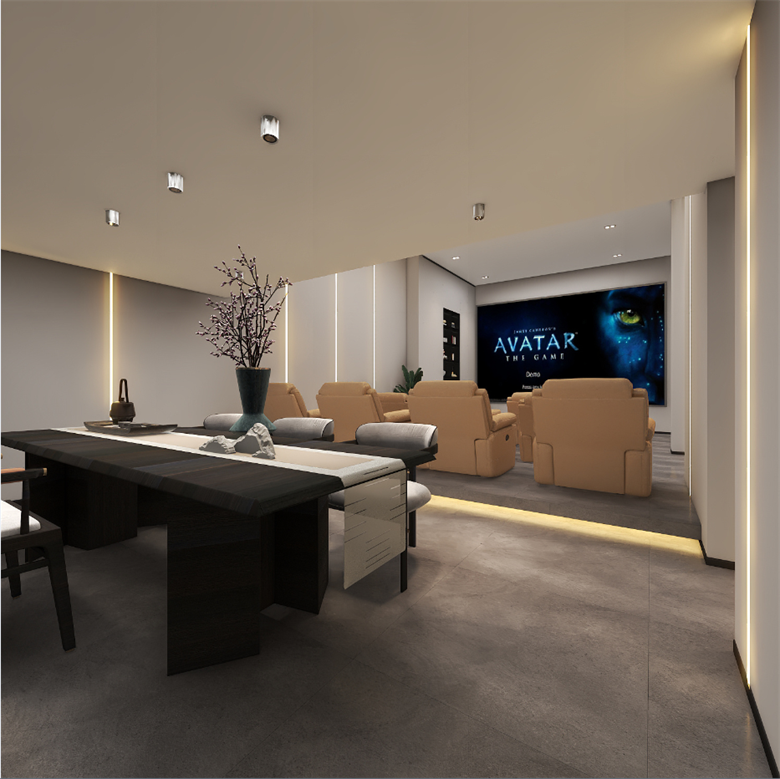 此案,為現(xiàn)代極簡(jiǎn)風(fēng)格,整體以簡(jiǎn)單大氣,穩(wěn)重不失溫馨,設(shè)計(jì)上嚴(yán)格遵循人體工程學(xué)原則,在造型、材質(zhì)等方面要符合人的生理和心理需求。此案設(shè)計(jì)的色彩比較單一,顏色多選用單色,或少數(shù)幾種顏色搭配。避免使用多種顏色混搭以及避免使用強(qiáng)烈對(duì)比的顏色,復(fù)雜華麗的顏色,反對(duì)繁瑣的花紋色彩的搭配。在色彩上追求平和、舒緩、內(nèi)斂之感極簡(jiǎn)主義的設(shè)計(jì)多采用直線、方形,或規(guī)則簡(jiǎn)單的幾何形狀,減去一切不必要的元素與細(xì)節(jié),比例精確,整體呈現(xiàn)簡(jiǎn)潔明快,干凈利落感覺。此案中大部分空間運(yùn)用了無(wú)主燈,因?yàn)闊o(wú)主燈設(shè)計(jì)講究的是“見光不見燈,分區(qū)域散點(diǎn)照明”。而且的無(wú)主燈設(shè)計(jì)能夠讓空間更具層次感,顯得非常的高級(jí),若隱若現(xiàn),層次分明。
