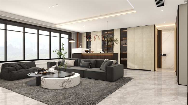 整體空間以現(xiàn)代輕奢風(fēng)格的設(shè)計(jì)基調(diào)為主,布置上簡(jiǎn)約時(shí)尚的家具,營(yíng)造溫馨的家庭氛圍;利落的線條搭配舒適質(zhì)感的軟裝;開(kāi)闊的空間為整個(gè)設(shè)計(jì)帶來(lái)自由閑適;迎合業(yè)主家庭成員的需求,將空間最大利用設(shè)計(jì)化,暖色調(diào)的燈光布置,整體溫暖舒適;各種材料相互協(xié)調(diào),帶來(lái)時(shí)尚的氛圍。