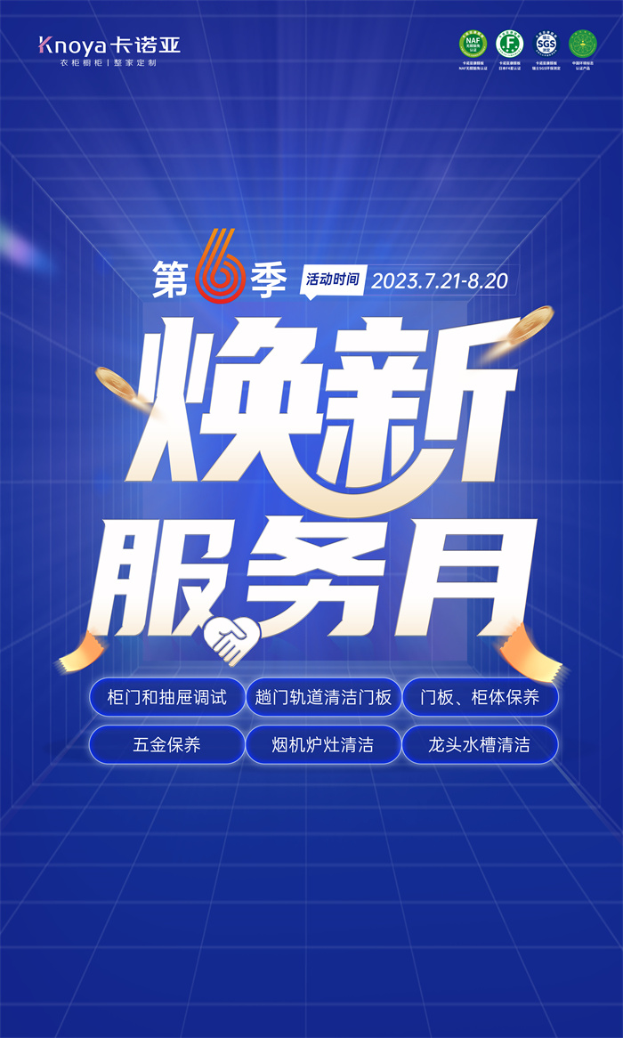 本次煥新服務(wù)月,不但有感恩回饋新老客戶專享煥新服務(wù)活動(dòng)的各項(xiàng)鉅惠,同時(shí)針對老客戶,除了常規(guī)的上門維護(hù)保養(yǎng)服務(wù)之外,如果老客戶家里需要煥新,包括五金升級(jí)更換、配套家品更新、衣柜護(hù)墻更換等,還有推薦新客戶,均可獨(dú)享3大煥新專屬優(yōu)惠活動(dòng)和各種福利。