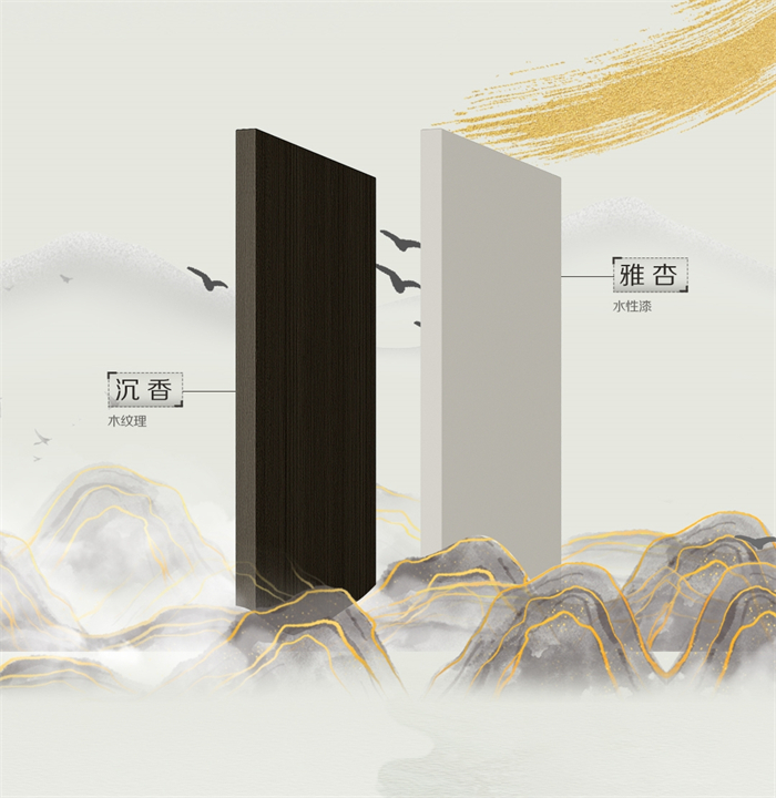 深淺撞色,沉穩(wěn)與風(fēng)雅交織。古樸的沉香木紋色,搭配純凈純粹的雅杏膚感色,穿越千年,從視覺和觸覺上感知東方色譜美學(xué)。