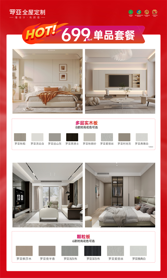 品質(zhì)消費時代,多層實木板作為一種具有高環(huán)保性能和優(yōu)越物理特性的板材,逐漸成為品質(zhì)家裝的標配。此次雙節(jié)大促,羅亞在全國各地門店聲勢浩大掀起多層實木板的普惠風暴,為消費者打造更高顏值、更高品質(zhì)的家居生活。羅亞重磅推出多層實木板,嚴選寒帶木種,擁有縱橫交錯膠合11層、結(jié)構(gòu)穩(wěn)定抗變形、握釘力好、強度高、防潮更強等優(yōu)勢,擁有多款時尚花色,全方位滿足年輕消費者對于“心價比”的消費需求,使用高端板材打造年輕人的第一套房,構(gòu)建全新的家居消費體驗。