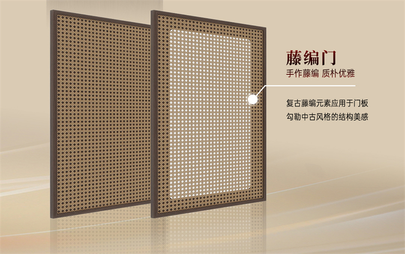 吊柜采用手作藤編柜門,質(zhì)樸優(yōu)雅,勾勒中古風(fēng)格的結(jié)構(gòu)美感,搭配骨骼門島臺(tái),讓空間更有質(zhì)感和格調(diào)。清秋胡桃與藤編元素彼此呼應(yīng),將中古風(fēng)的懷舊與精致展現(xiàn)得恰到好處。