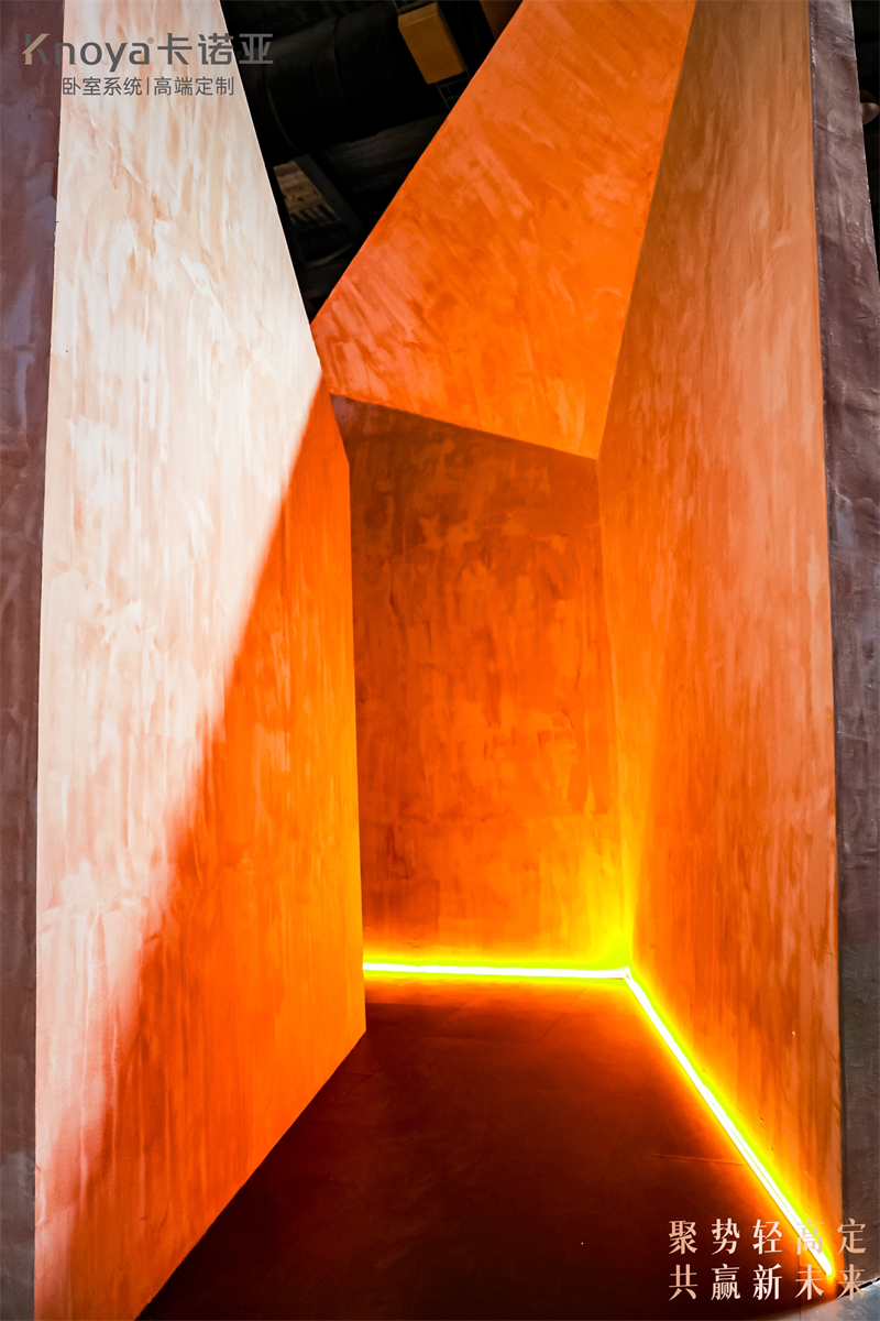 曹崇慧:卡諾亞今年展館首次設(shè)置在輕高定區(qū)域,以“破·壁——回歸自然,重塑空間”為主題參展??ㄖZ亞輕高定展館設(shè)計(jì),以洞穴為原型,通過天然巖石門廊、枯枝裝置藝術(shù)與層疊光影,營造神秘而治愈的探索場域。