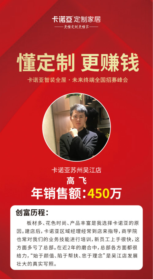 想要加盟全屋定制品牌賺錢,以上三點是非常關(guān)鍵的因素,希望大家能對此有所了解。加盟全屋定制選擇卡諾亞定制家居,作為中國至早的定制家居品牌,準上市公司,行業(yè)生產(chǎn)規(guī)模前五,產(chǎn)品涵蓋5大基材、6大空間、7大風格及20個系列,有足夠的運營經(jīng)驗和資本,有系統(tǒng)的管理模式和營銷體系,能夠給予專賣店專業(yè)的市場指導和營銷建議,讓終端經(jīng)銷商更具戰(zhàn)斗力,盈利有保障。