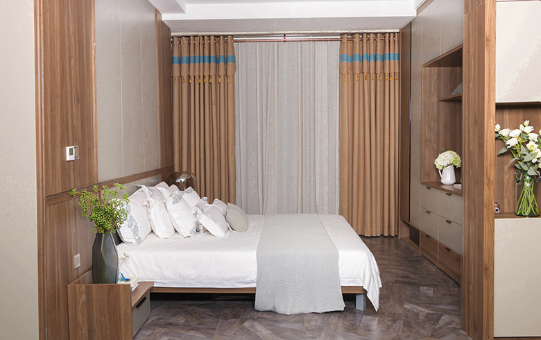 卡諾亞丨都市閑情·臥房開啟繁忙的都市生活,從睡一個(gè)好覺開始!大面積的護(hù)墻系統(tǒng)使用,冬暖夏涼、吸音減噪、防潮吸濕。運(yùn)用時(shí)尚豎紋線條,護(hù)墻系統(tǒng)與墻等寬色塊設(shè)計(jì),讓人備受呵護(hù),更具安全感。深色木紋與淺灰搭配使用,寧靜的色調(diào)中賦予臥房別樣的靜謐。