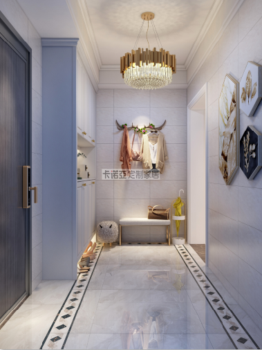 為了保持玄關(guān)空間的寬敞通透,設(shè)計(jì)師建議不做滿墻的柜子,所以臺面上留了不少空間;設(shè)計(jì)師還為柜門選了白色,這就不會讓空間有壓抑感。