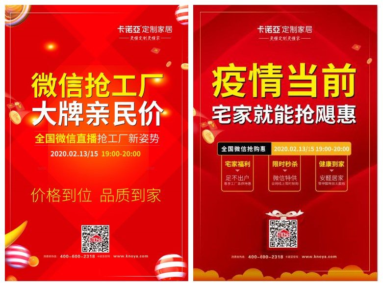 被疫情隔離的潛在裝修需求,有了線上的助力,迅速爆發(fā)出巨大潛力。眼下部分企業(yè)剛剛開始復(fù)工,物流也尚未恢復(fù)正常,對于有裝修需求的用戶而言,提前做好裝修規(guī)劃,未嘗不是宅家的另一種選擇。因此,卡諾亞采取線上微信搶購、限時優(yōu)惠等多元銷售模式,并加強(qiáng)與線上消費(fèi)者的溝通和互動,2月27日還將開啟“卡諾亞定制家居3·15品質(zhì)直播盛典”。至此,卡諾亞率先掀起的新零售模式,將成為疫情期間家裝銷售的重要渠道。