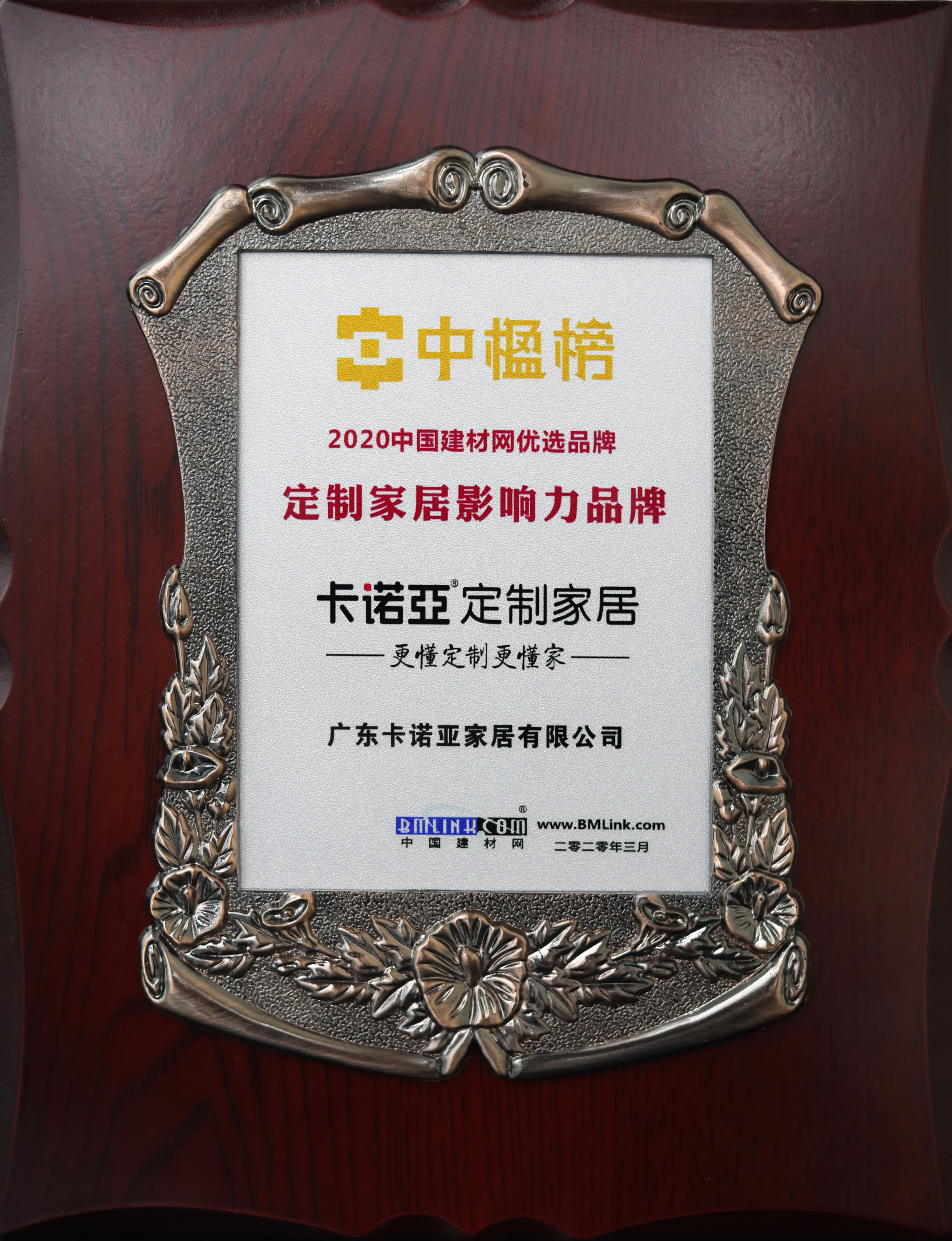 “中楹榜”甄選建材各界有分量的品牌,以中楹“中國美好生活家”的寓意,凝聚行業(yè)品牌,鼓勵(lì)、促進(jìn)建材行業(yè)的創(chuàng)新與發(fā)展。本次評(píng)選活動(dòng),卡諾亞在眾多定制家居企業(yè)中脫穎而出,榮獲“中楹榜”2020優(yōu)選品牌“定制家居影響力品牌”。
