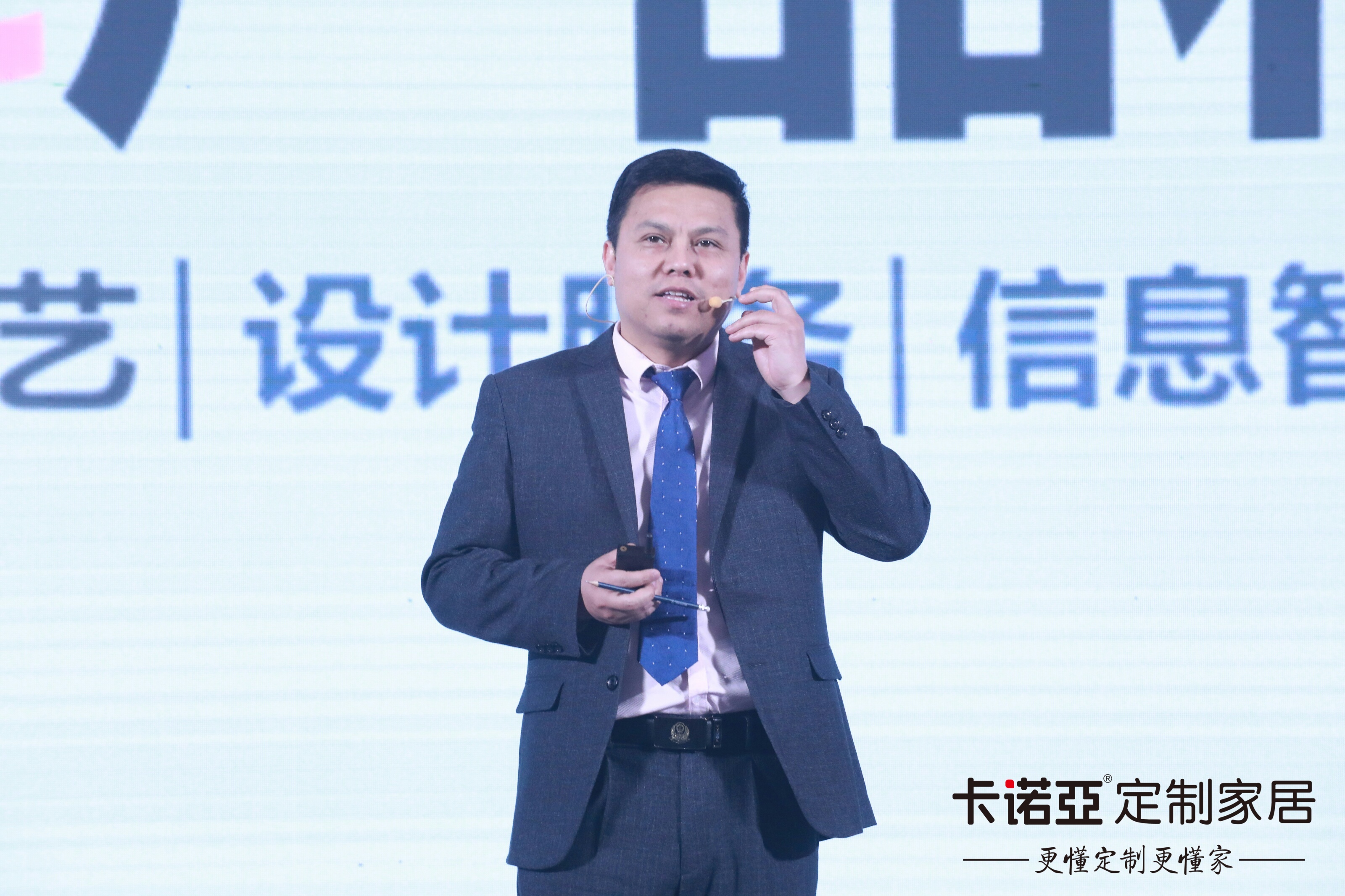 圖:卡諾亞定制家居副總裁兼生產(chǎn)總經(jīng)理葉喜都先生做“智慧制造,護航終端”主題報告