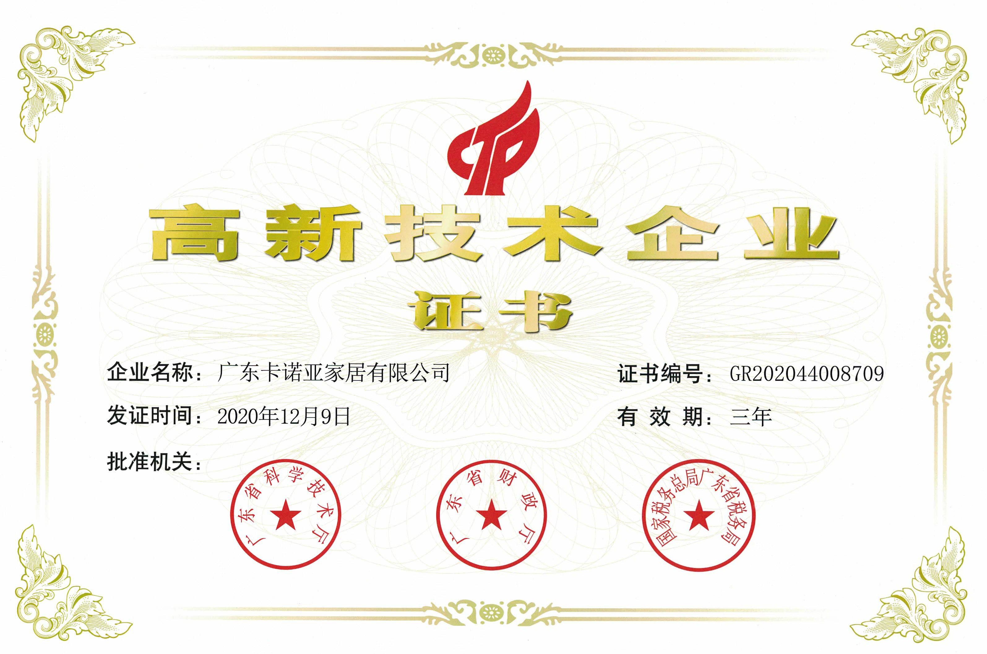 日前,卡諾亞定制家居收到由廣東省科學(xué)技術(shù)廳、廣東省財(cái)政廳、國家稅務(wù)總局廣東省稅務(wù)局聯(lián)合頒發(fā)的《高新技術(shù)企業(yè)證書》。獲此認(rèn)證,標(biāo)志著卡諾亞定制家居的自主創(chuàng)新能力和研發(fā)水平,得到了國家層面的認(rèn)可,也是公司在創(chuàng)新發(fā)展道路上的又一重要里程碑。