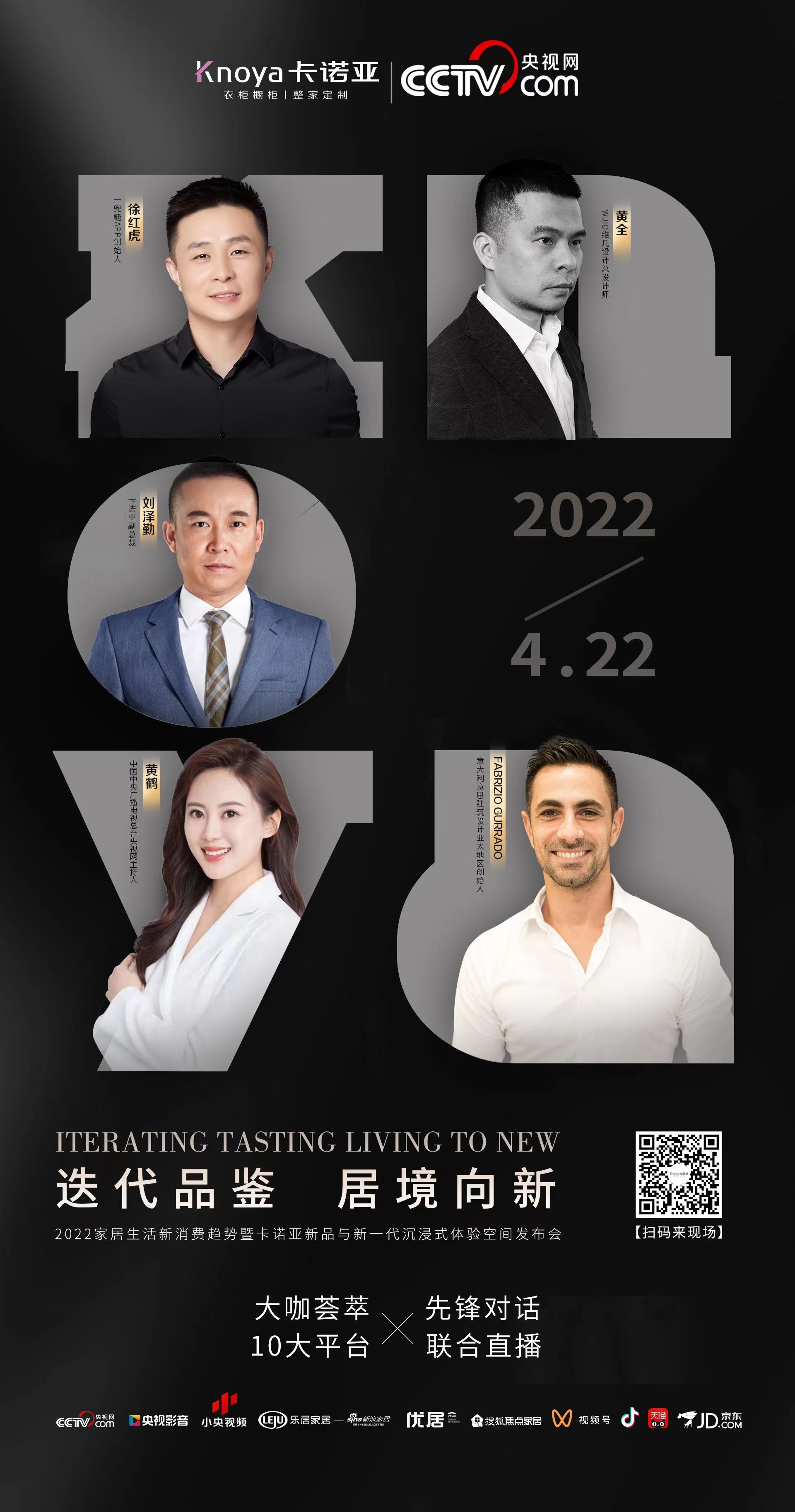 4月22日,“迭代品鑒,居境向新“2022家居生活新消費(fèi)趨勢暨卡諾亞新品與新一代沉浸式體驗(yàn)空間發(fā)布會(huì),在北京CCTV央視網(wǎng)演播廳圓滿舉行??ㄖZ亞副總裁劉澤勤,央視網(wǎng)產(chǎn)業(yè)發(fā)展事業(yè)群總經(jīng)理宋維君,央視網(wǎng)主持人黃鶴,一兜糖APP創(chuàng)始人徐紅虎,意?利意思建筑設(shè)計(jì)亞太地區(qū)創(chuàng)始人Fabrizio Gurrado、WJID維幾設(shè)計(jì)總設(shè)計(jì)師黃全,通過MR云直播方式相聚北京,共同見證盛會(huì)。此次發(fā)布會(huì),卡諾亞攜手國家級CCTV央視網(wǎng),首開定制行業(yè)先河,借助權(quán)威官媒優(yōu)勢,賦能卡諾亞品牌價(jià)值,極大提升其品牌形象。