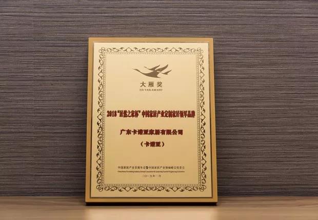 2019年1月6日,素有“家居界奧斯卡”美譽(yù)的第6屆中國家居產(chǎn)業(yè)發(fā)展年會(huì)暨“大雁獎(jiǎng)”頒獎(jiǎng)盛典在北京隆重舉行。此次盛典由十三家行業(yè)協(xié)會(huì)及新浪家居聯(lián)合主辦,北京居然之家提供戰(zhàn)略支持,近千位來自全國各地的家居行業(yè)領(lǐng)袖齊聚一堂。在本屆“大雁獎(jiǎng)”頒獎(jiǎng)盛典上,經(jīng)過評(píng)委會(huì)的深入研究與綜合審核,卡諾亞斬獲“大雁獎(jiǎng)·2018中國家居產(chǎn)業(yè)定制家居領(lǐng)軍品牌”,再次彰顯卡諾亞品牌專注定制家居18年的影響力。